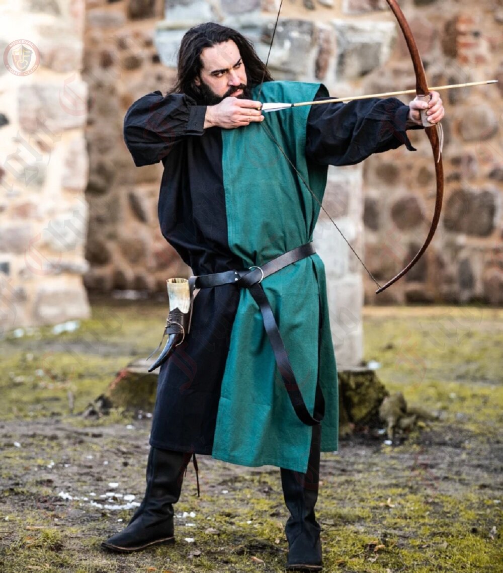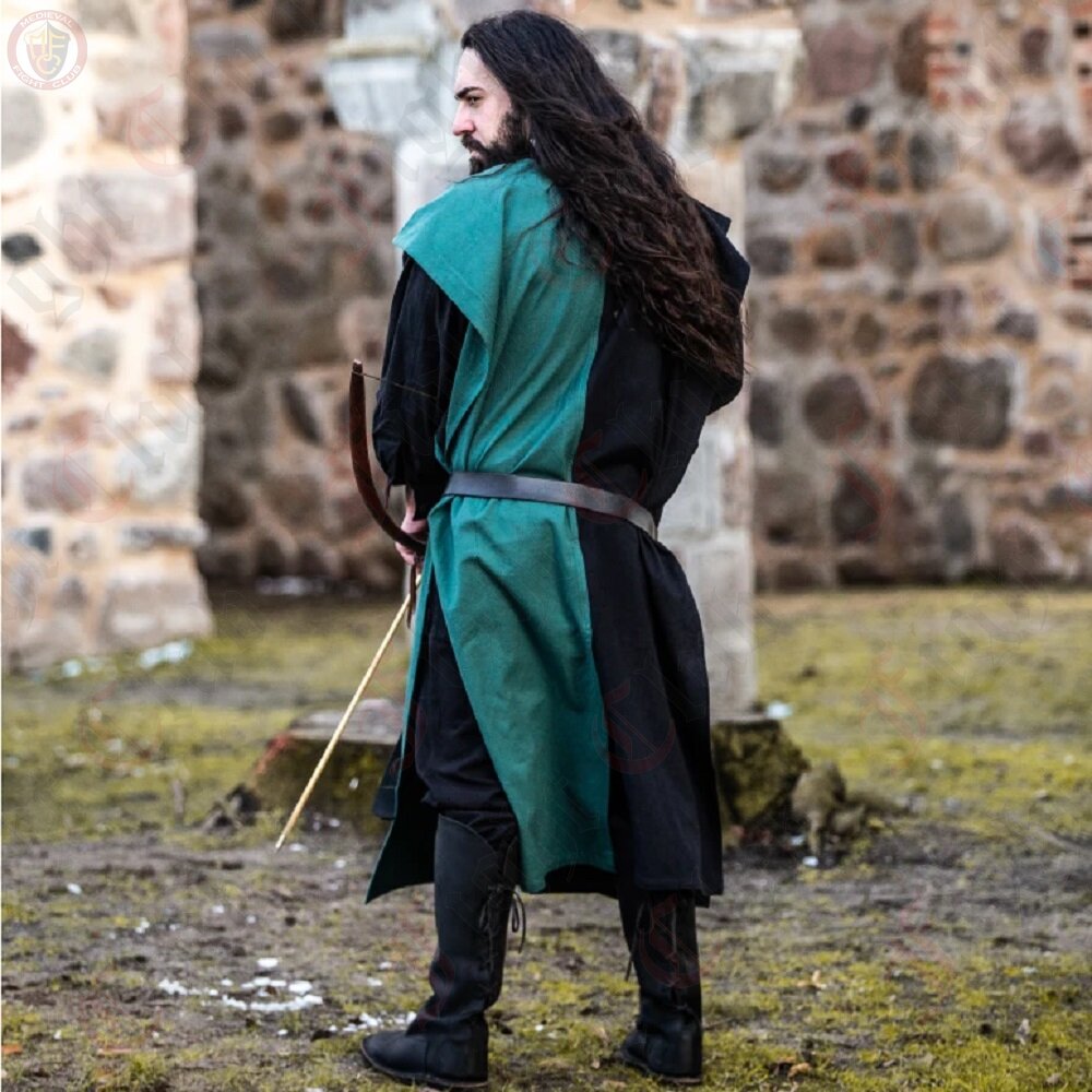 Travel back in time with our Black/Green Two-tone tunic, inspired by medieval fashion. This classic piece blends the elegance of black with the natural charm of green. Perfect for historical events or simply embracing timeless style, it offers both comfort and authenticity. Step into history and make a statement with our Two-tone tunic.