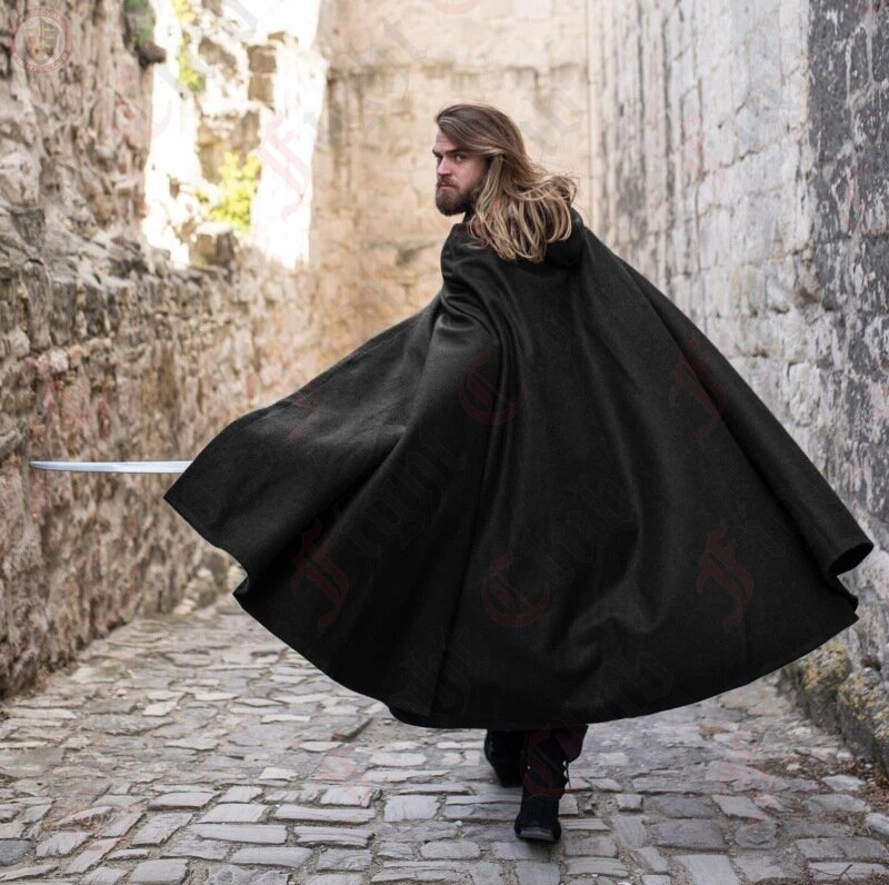 Feeling the chill of cold winter nights? Wrap yourself in timeless warmth with this classic black wool cape — the perfect addition to any medieval outfit or cold-weather ensemble.