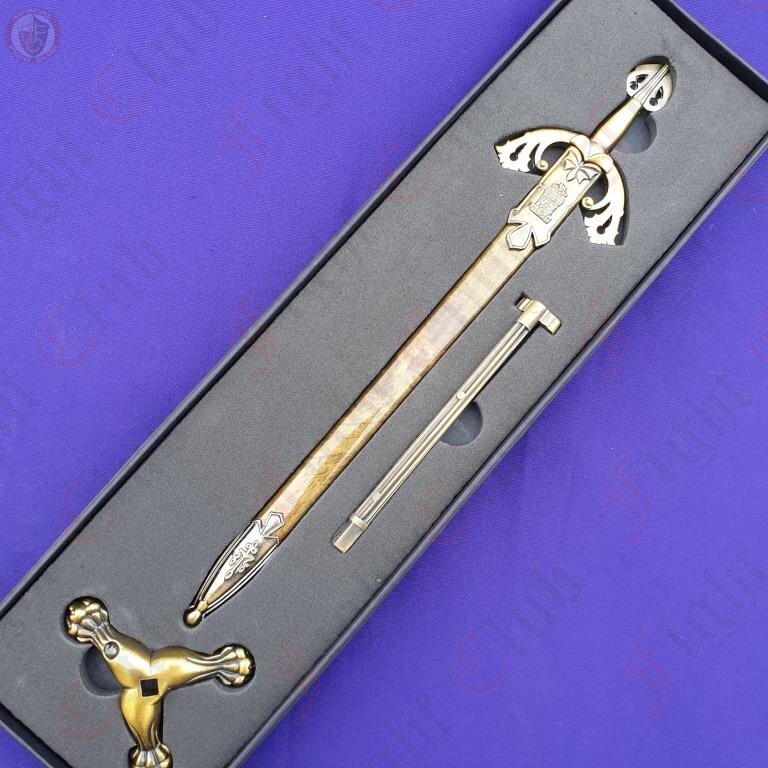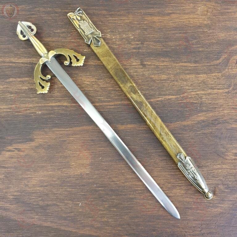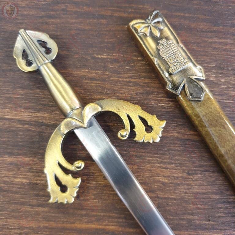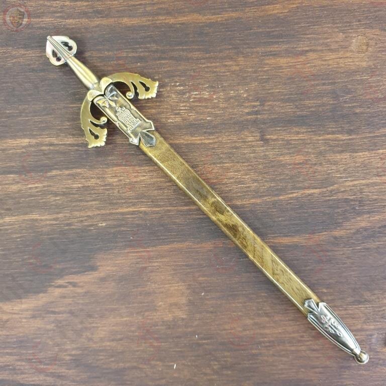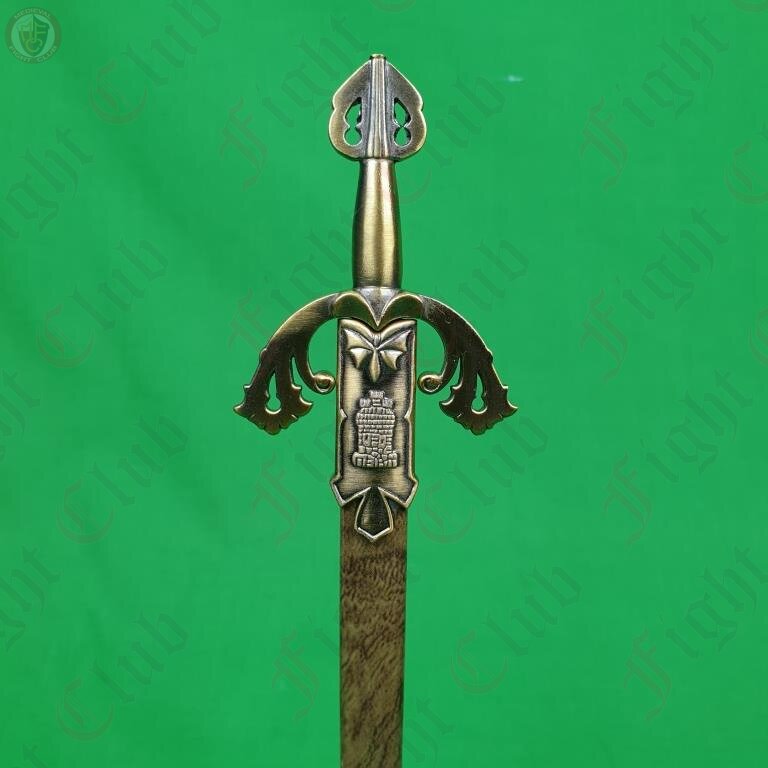 Castillo is the Spanish word for castle, of which Spain has many. Grand things, often taking decades to build, they are a point of pride of the owner. It's not uncommon to display them as features, and this letter opener is no exception. Resembling a Spanish straight sword, with curled quillions and pommel, displaying a castillo on the scabbard, signifying strength, fortitude and longevity. The letter opener is a perfect ornament for your office or work area, capable of slicing open those bills and letters, or perhaps any tiny faerie-sized foes you may come across.