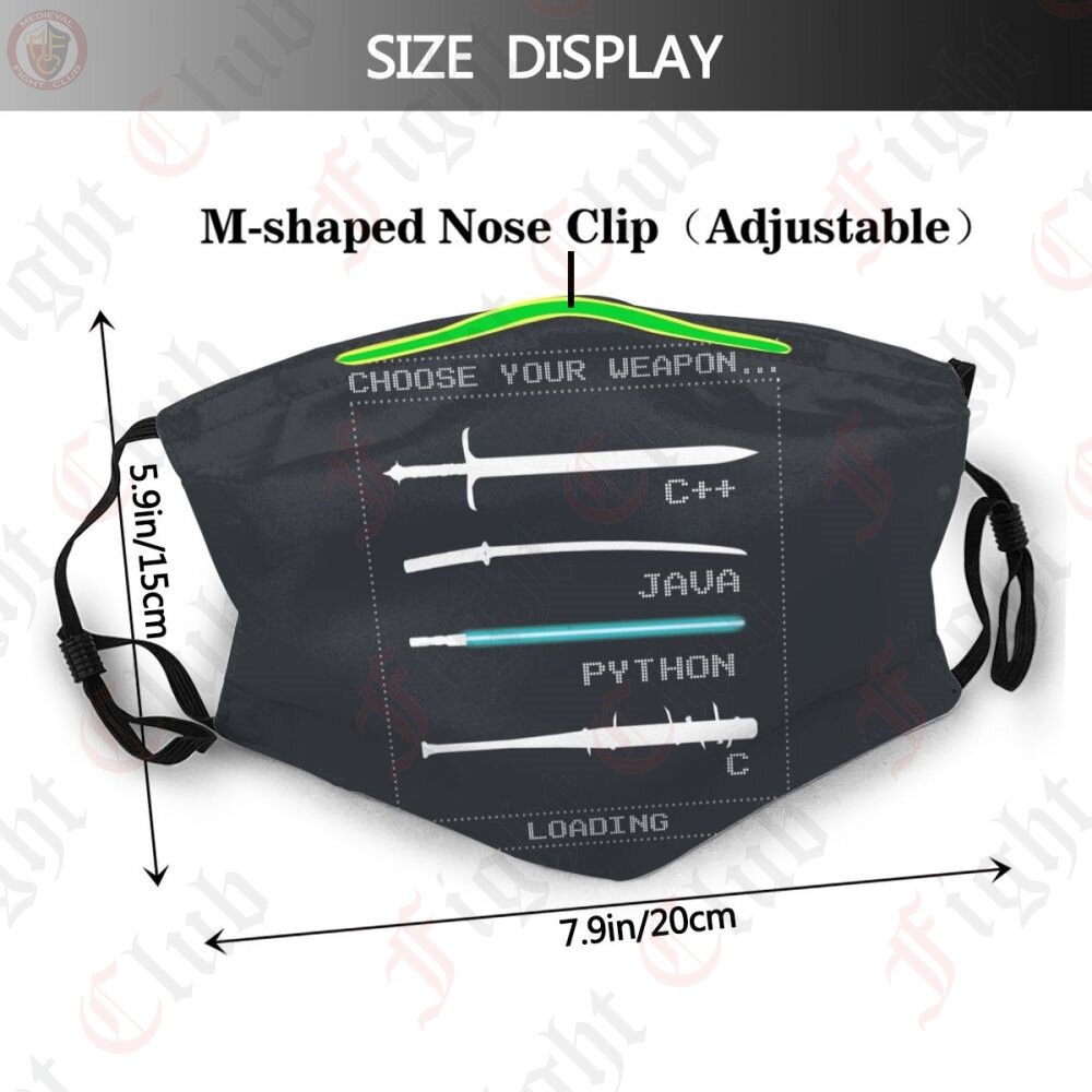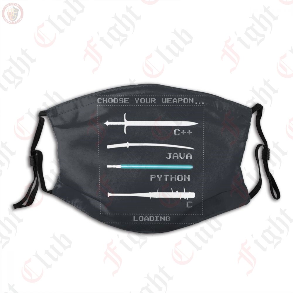 A facemask for anyone interested in coding, with references to your favourite languages!