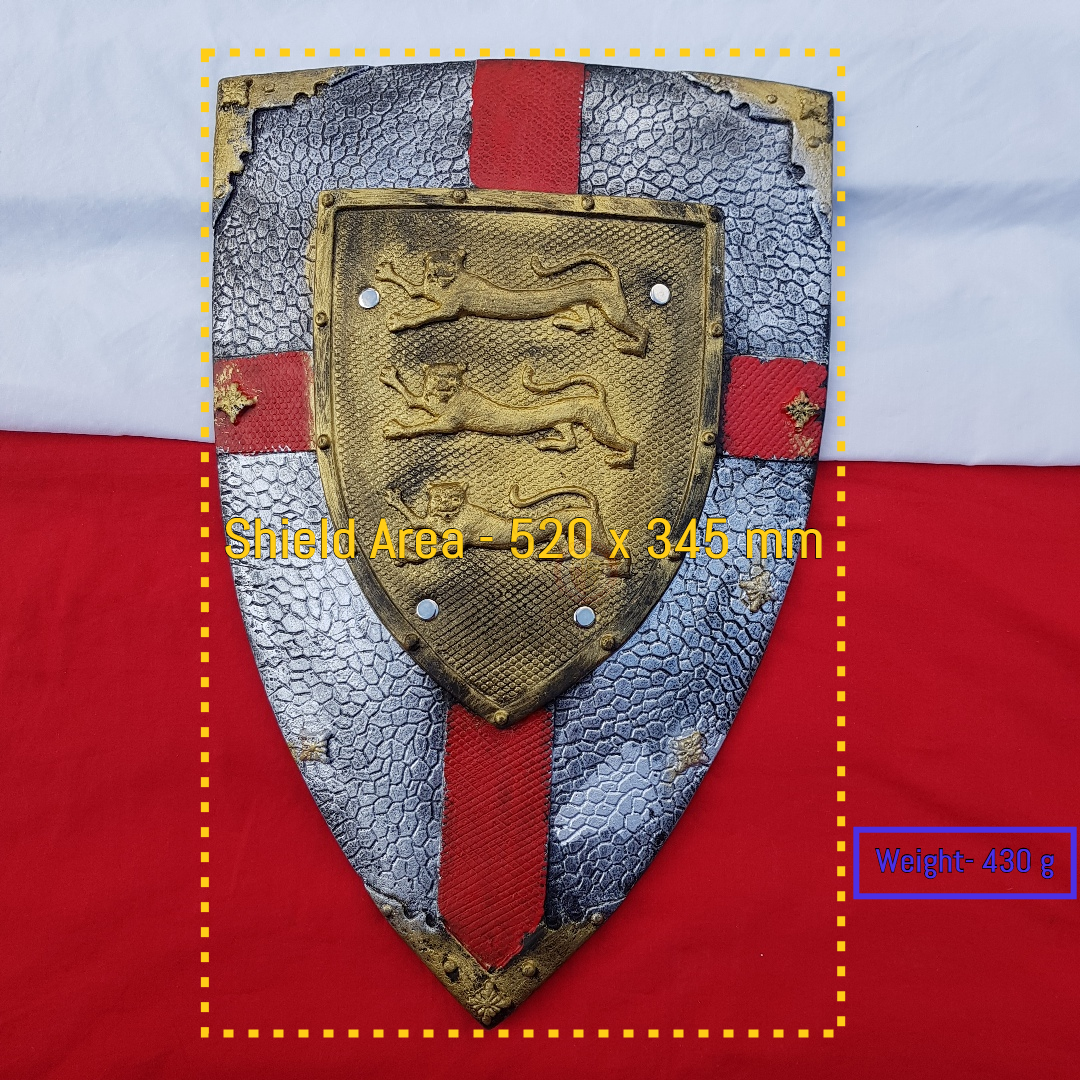 Our shield is designed to be used for COSPLAY or with foam rubber weapons. It has two strong elastic straps and can be worn on the arm.