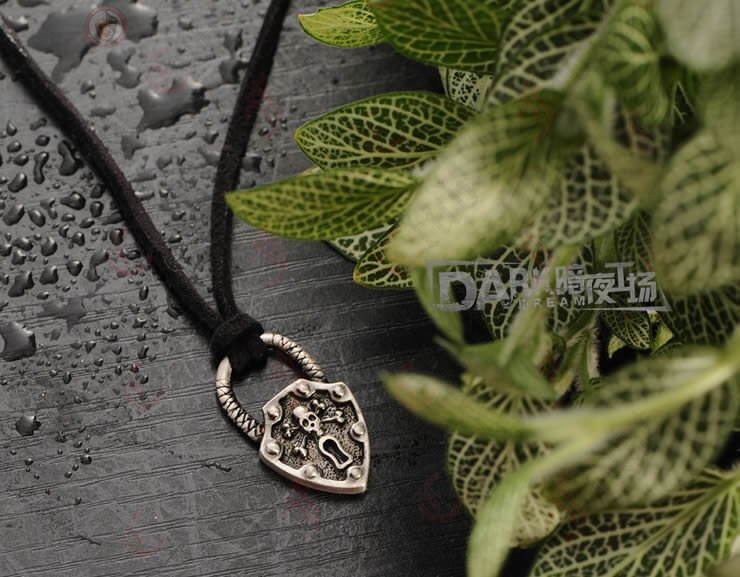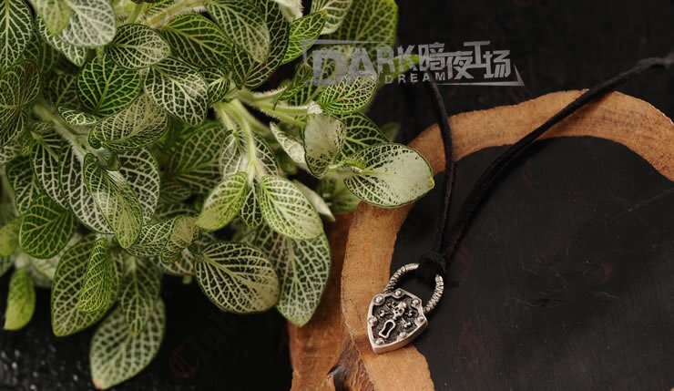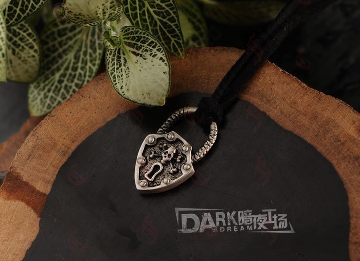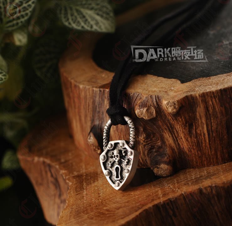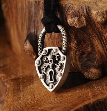 Pewter Death Lock Pendant with leather neck lace and clasp.