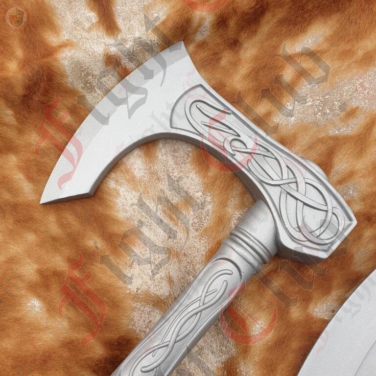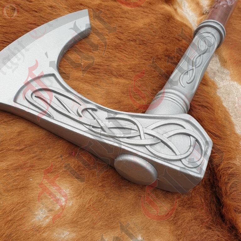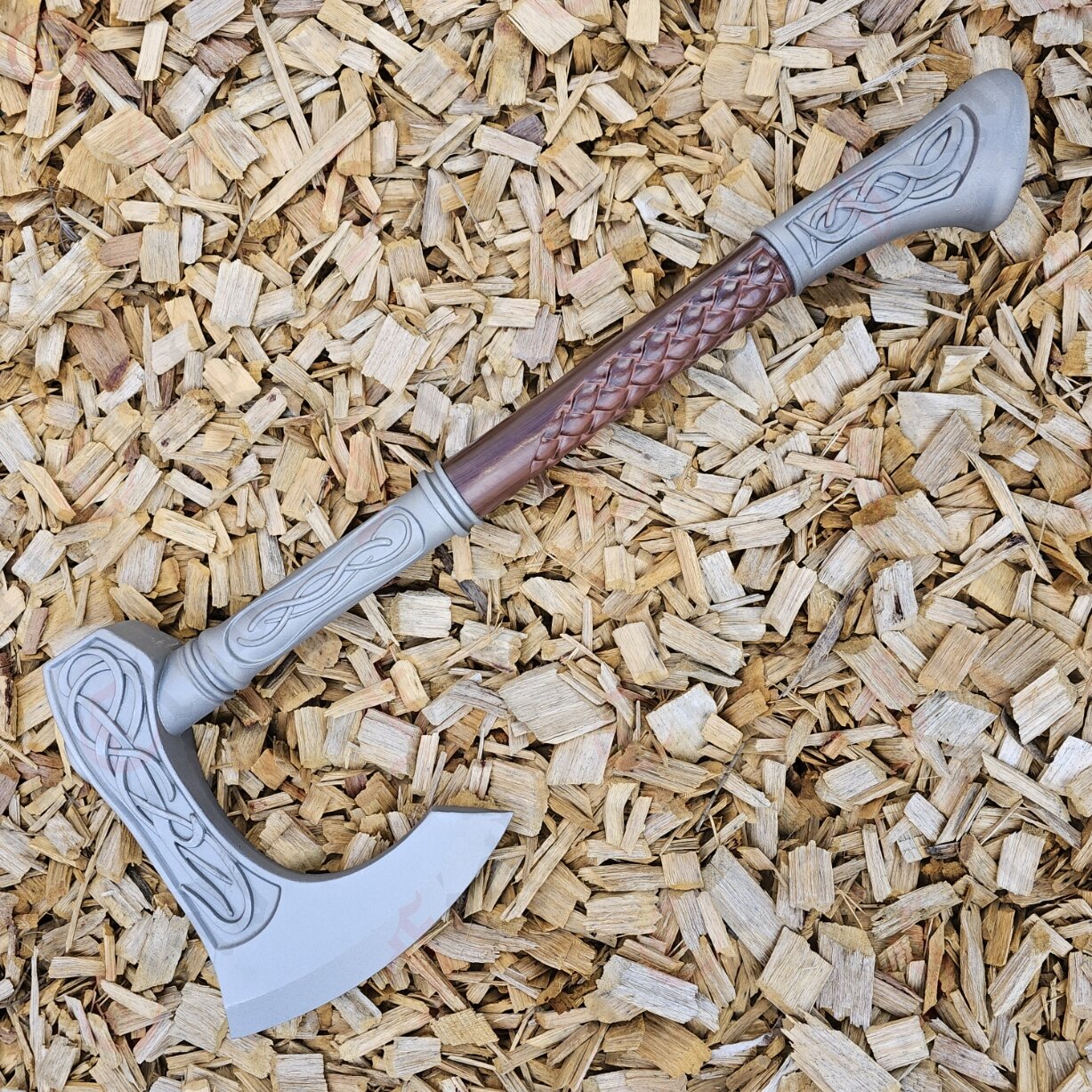 This Bearded Axe is the perfect display piece - a steel axe featuring the classic swirling patterning of the Norsemen along the blade face and the haft. Perfect for both hanging above your wall and crunching into your foe's skulls.