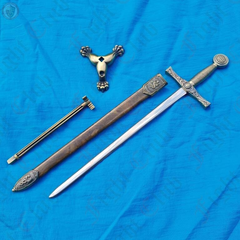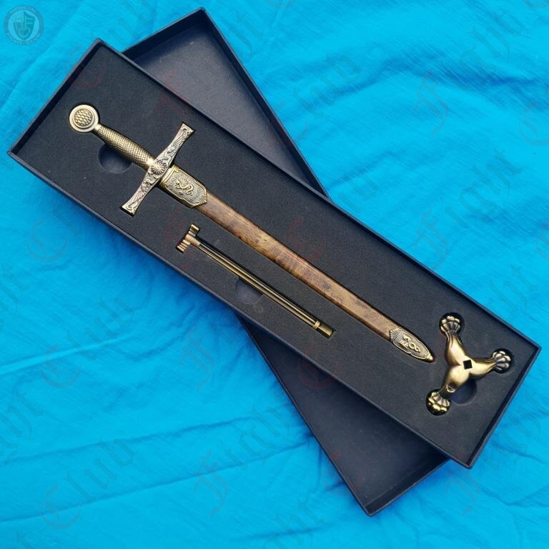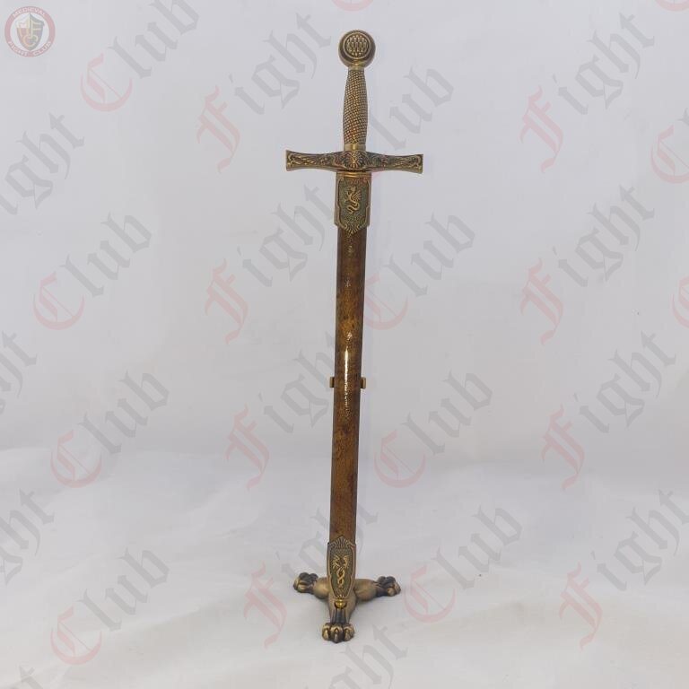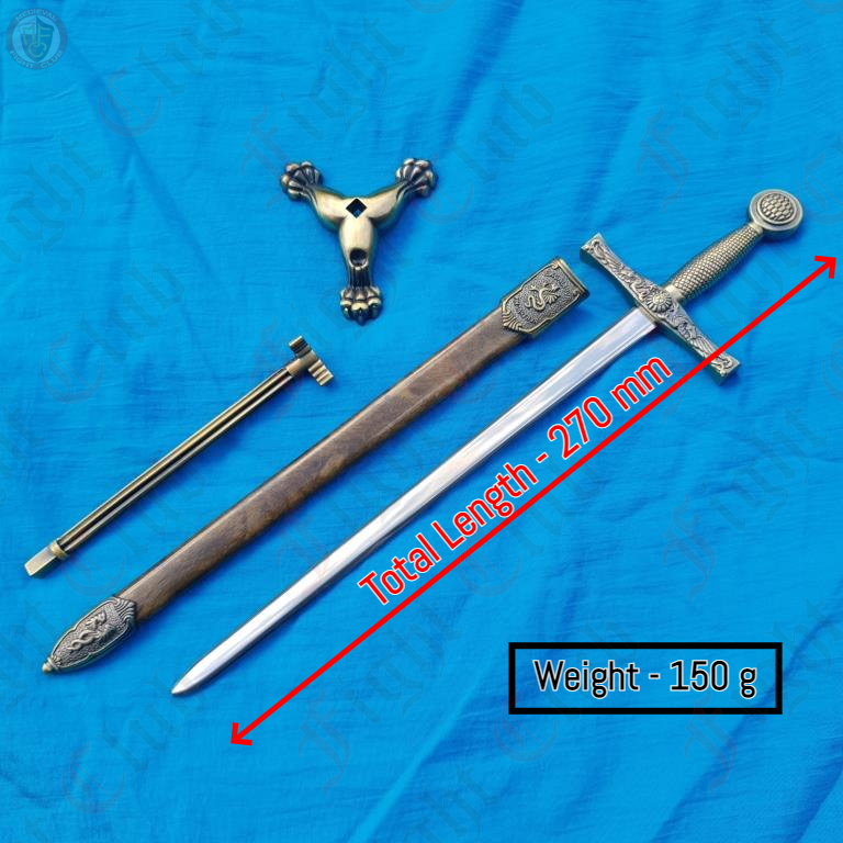 This ornamental steel Excalibur sword comes complete with its own miniature metal scabbard and metal stand. It can be used as a letter opener or simply as a display piece.