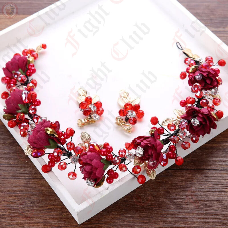 Adorn yourself with understated grace through our elegantly simple floral garland, a perfect crown for your head, accompanied by coordinating screw-on earrings. The rich burgundy flowers, paired with faux rose quartz, intricately weave together to form a stunning wreath, bringing a touch of natural beauty to your hair. Embrace the enchantment of simplicity with this refined floral accessory that effortlessly combines sophistication and charm.
