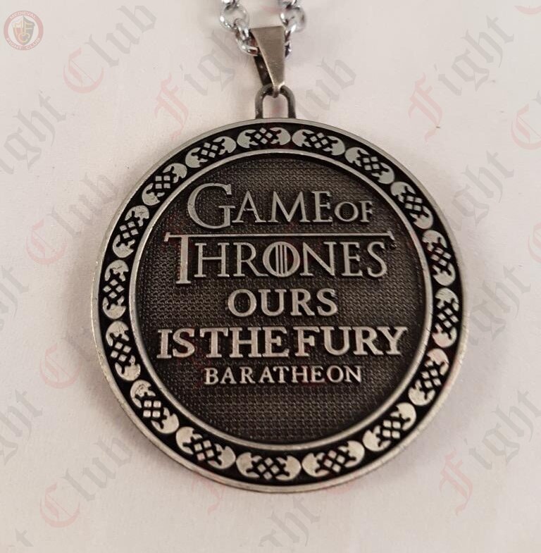 This Baratheon pendant measures 47mm in diameter. It is supplied on a 640mm chain.