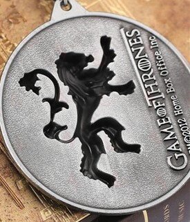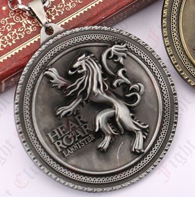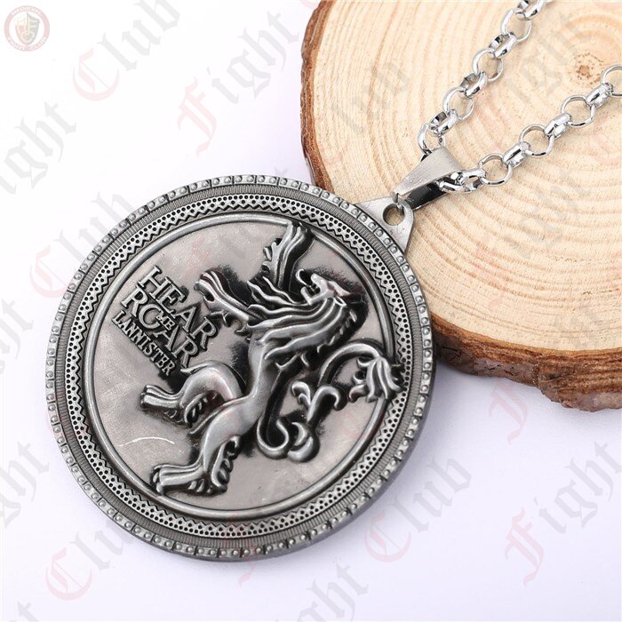 This Game of Thrones Lannister pendant is pewter in colour and measures 53mm in diameter. It is supplied on a 580mm chain.