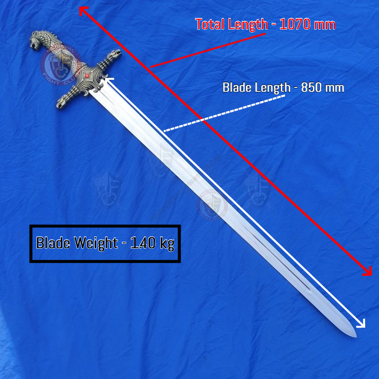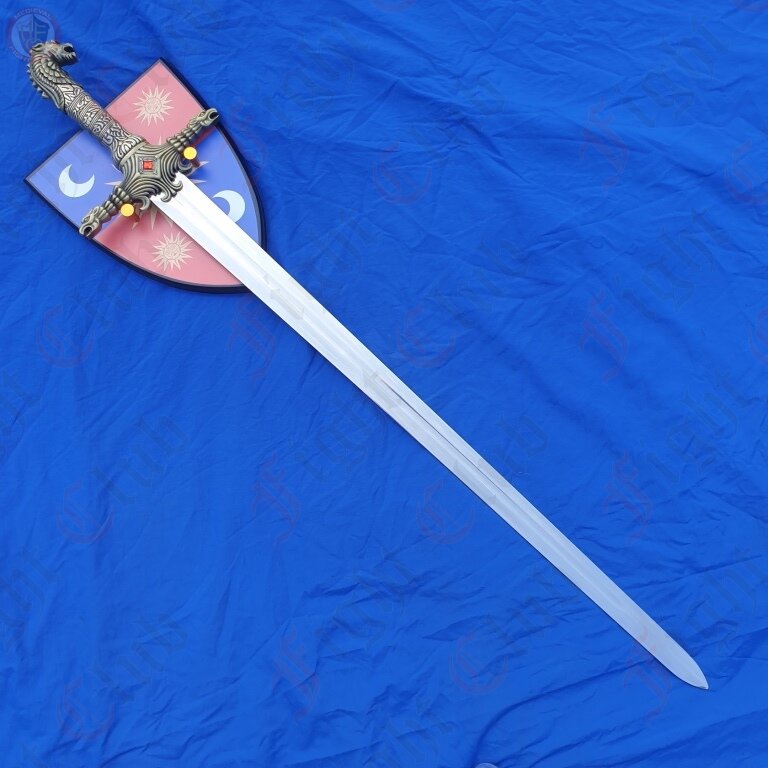 Based on the first sword wielded by Jaime Lannister in the Game of Thrones TV series. It is lost when Jaime is captured and loses his hand. The pommel of the sword is the lion sigil of House Lannister, but the sword "Oathkeeper" now belongs to Brienne of Tarth.