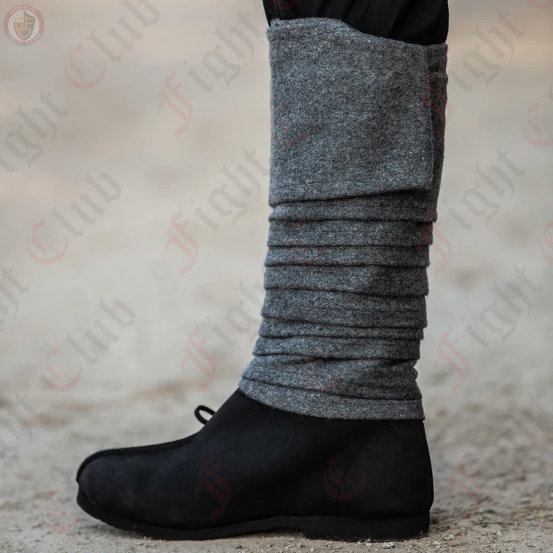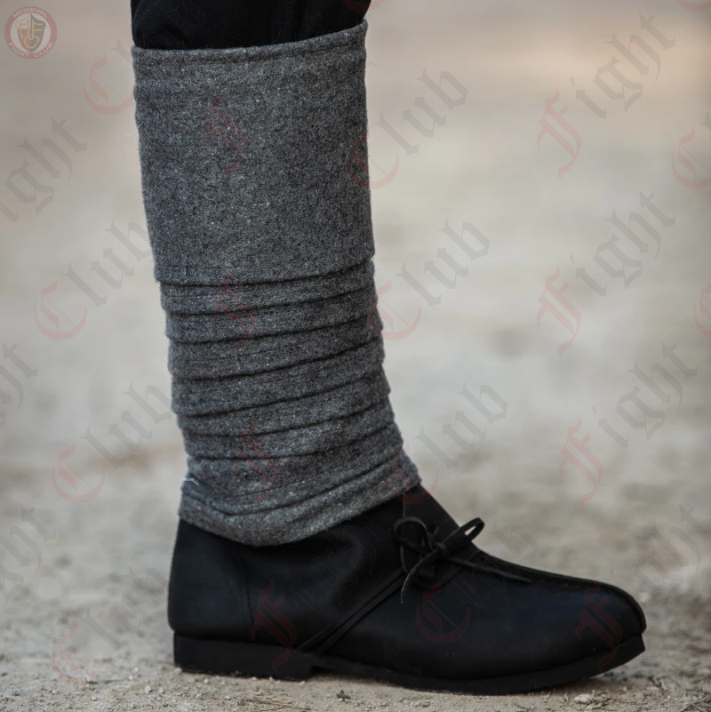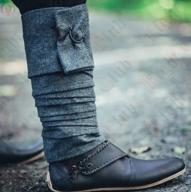 Crafted from wool, these wraps add an authentic touch to your ensemble, echoing the historical fashion of the time. Calf wraps were a staple in early medieval attire, worn across social classes, and our modern interpretation captures the essence of this timeless style. Step into the past with these wraps, where each fold tells a story of medieval elegance.
