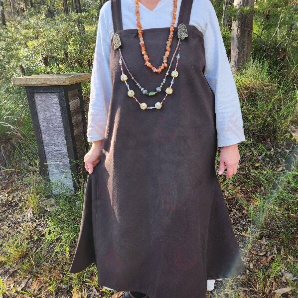 Step into the world of Viking tradition with our simple yet elegant Brown Woollen Hangaroc Apron Dress – a faithful replica of the attire worn by Viking women. Crafted with meticulous attention to detail, this dress exudes authenticity and functionality, just like its historical counterparts.