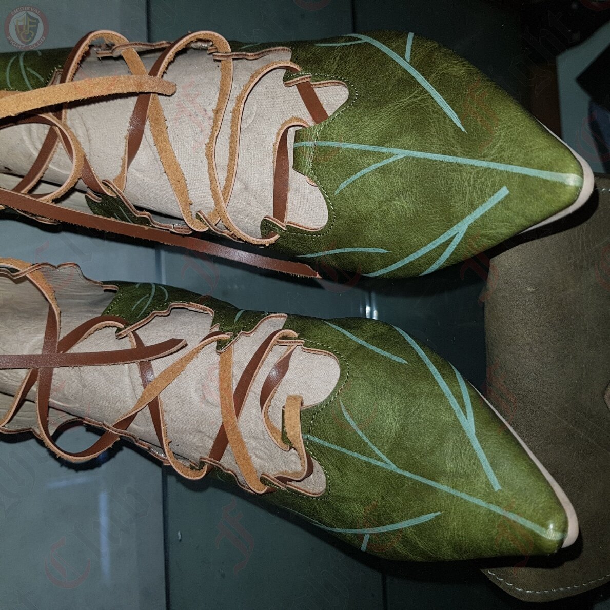 These boots are perfect for elven/fantasy costume, cosplay outfits and LARP adventures. The leather is soft and supple. The soles ensure a good grip is maintained on the ground.