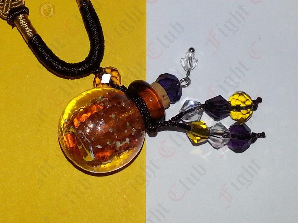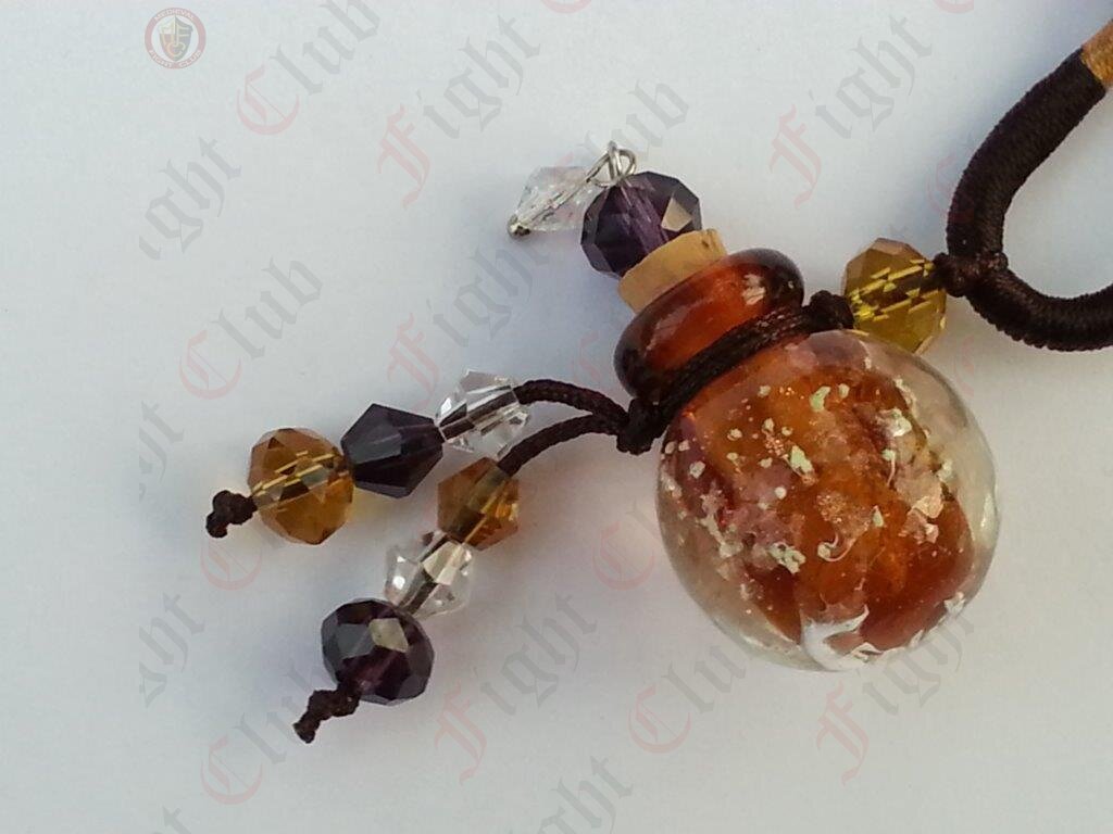 Pendant potion of Bark Skin, make your skin like the bark of a tree. This potion pendant has a jeweled cork and base to remind the wearer of the true value hidden inside. The inside of this wearable vial can contain a component of a spell, or simply just some essential oil or perfume as desired.