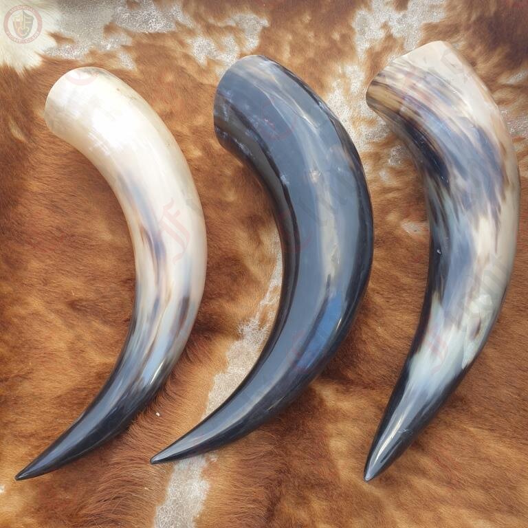 No two horns are alike. Yours may bear unique marks of its origin—tooling lines, natural scuffs, and wild colorings (black, white, mottled, or mixed). Want a certain look? Let us know, and we’ll do our best to match your warrior’s preference.