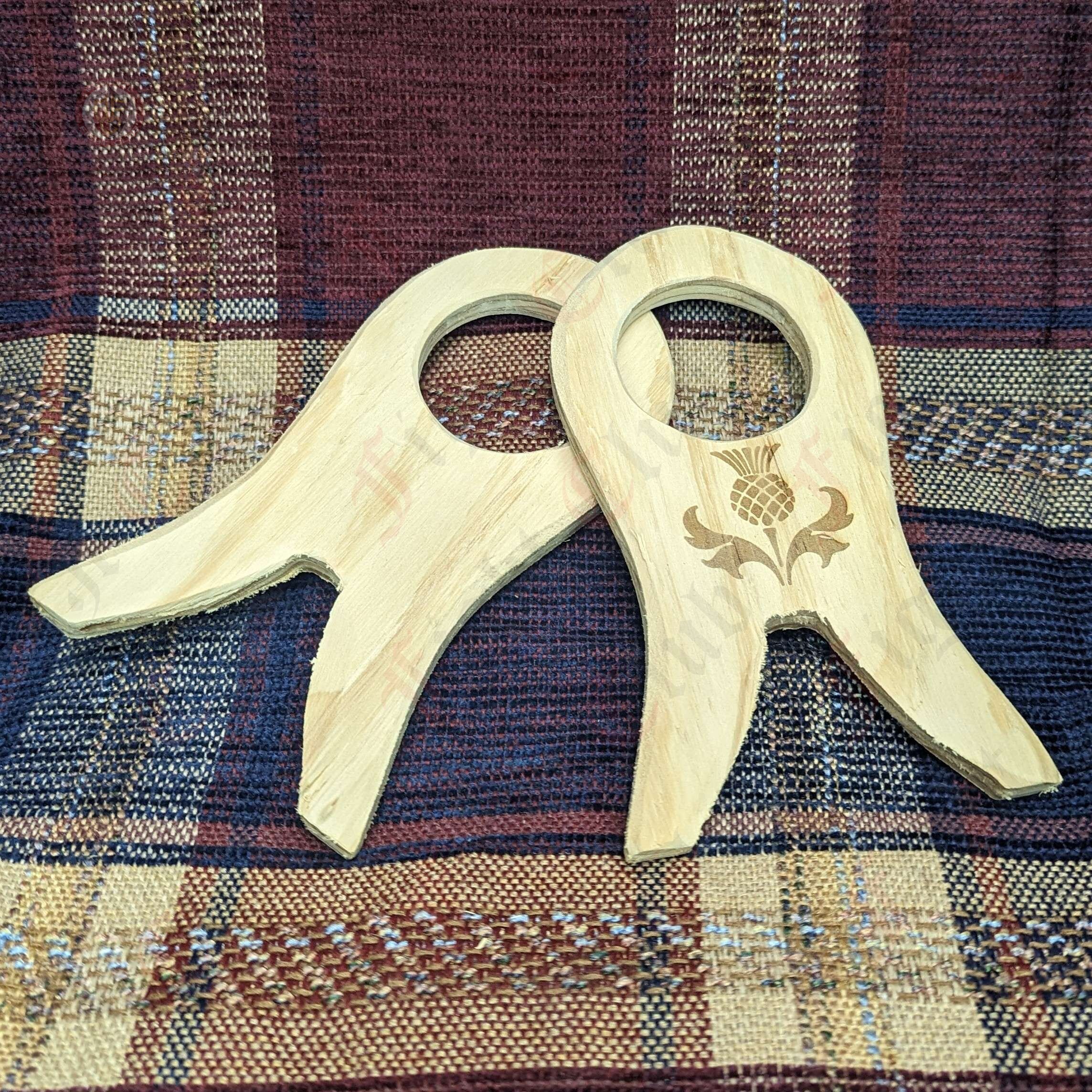 This horn stand is made from 100% sustainable Australian pine right here in Australia in the Fight Club workshop. After sanding we burn the Thistle pattern straight into the wood (one side only).