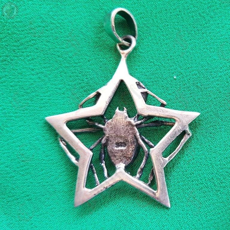 This Sterling Silver Gothic Spider Pendant necklace lying in a star like web really speaks for itself. A perfect addition to your collection.