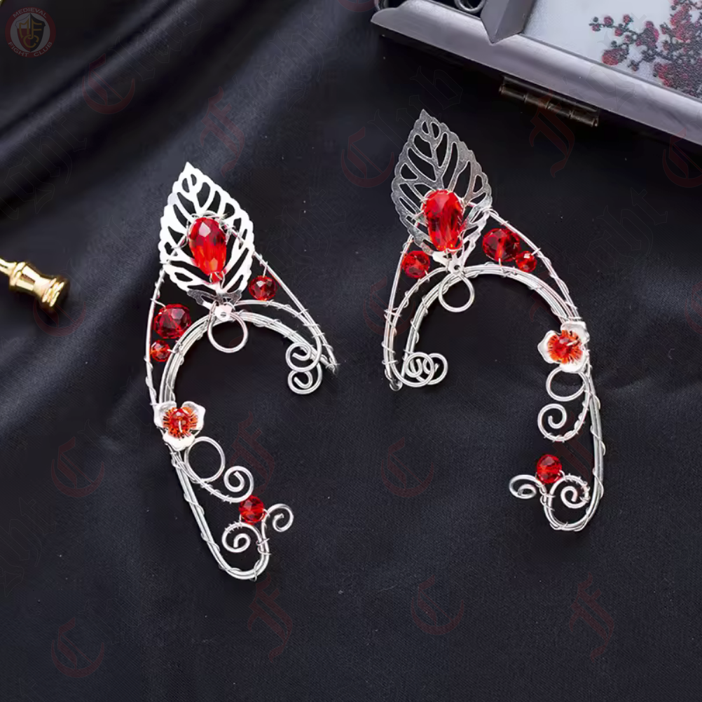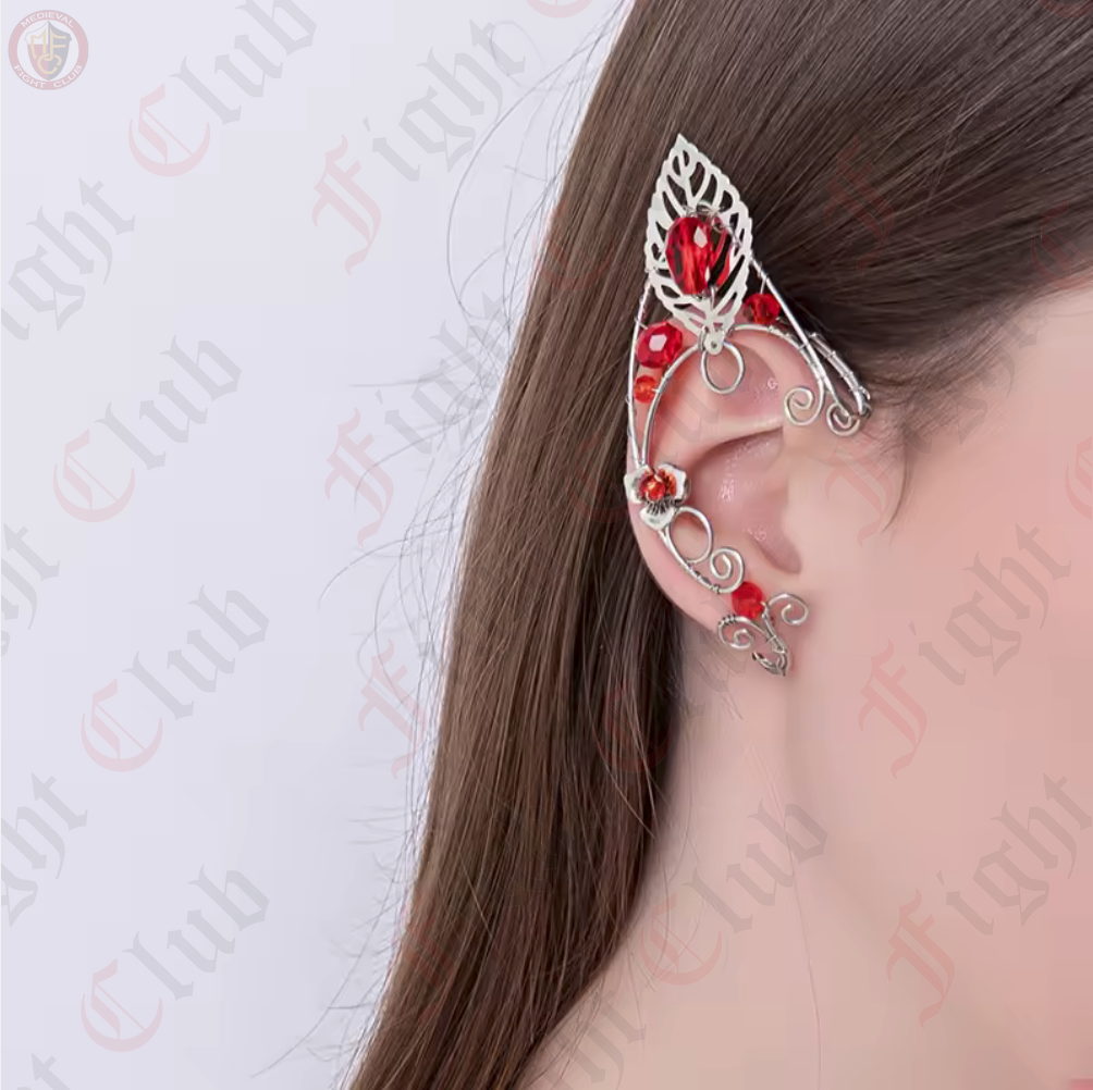 Delicate yet striking, the Silver Leaf Garnet Ear Cuff is a piece designed to capture both elegance and individuality. Crafted with a silver colour, the cuff gently wraps over the ear, requiring no piercing, while a finely detailed leaf motif cascades downward in a natural, flowing form.