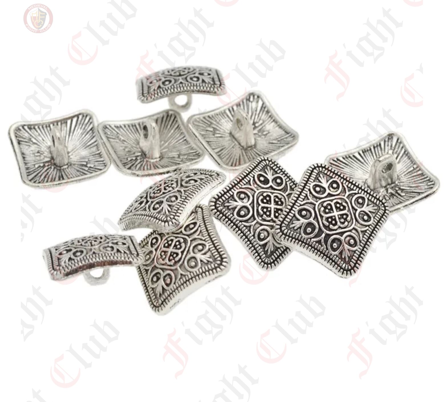 Silver square button x 10