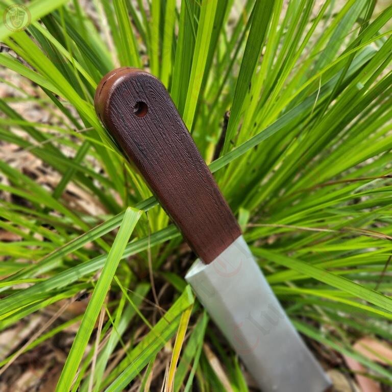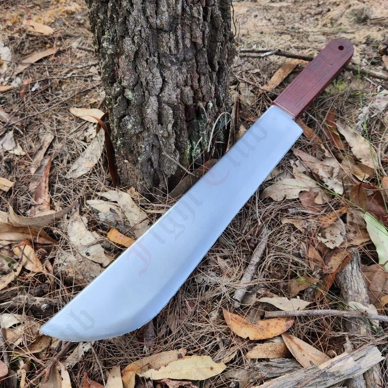 Straightforward and pragmatic, just as a machete should be. A no nonsense machete blade for chopping vines, shrubs and enemies, if need be.