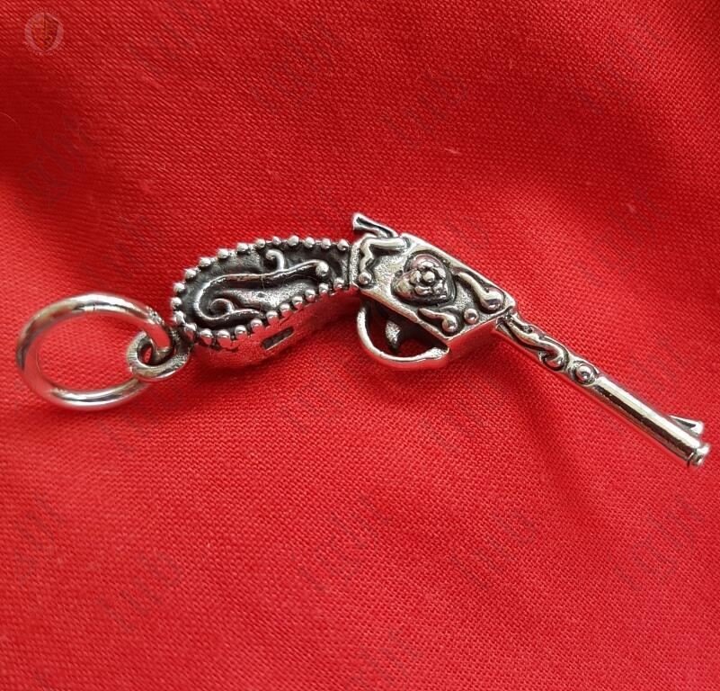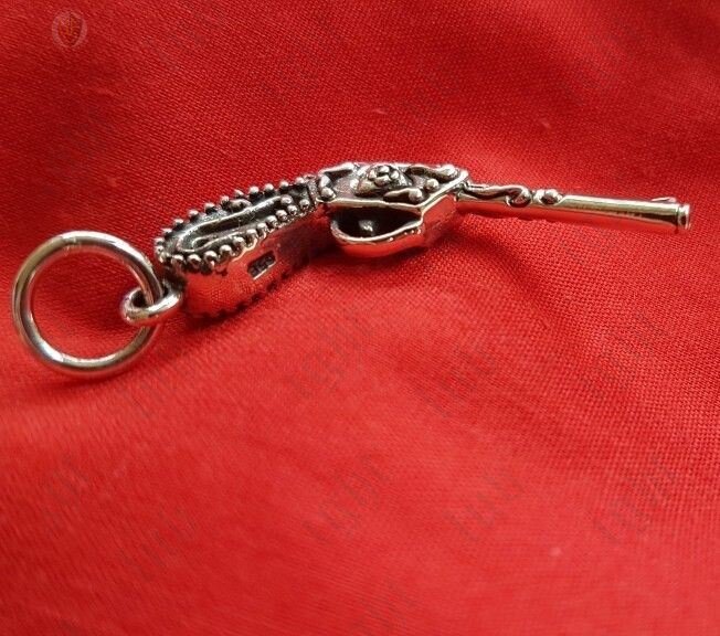 This Sterling Silver Revolver Gun Pendant would look great on a charm bracelet or necklace.