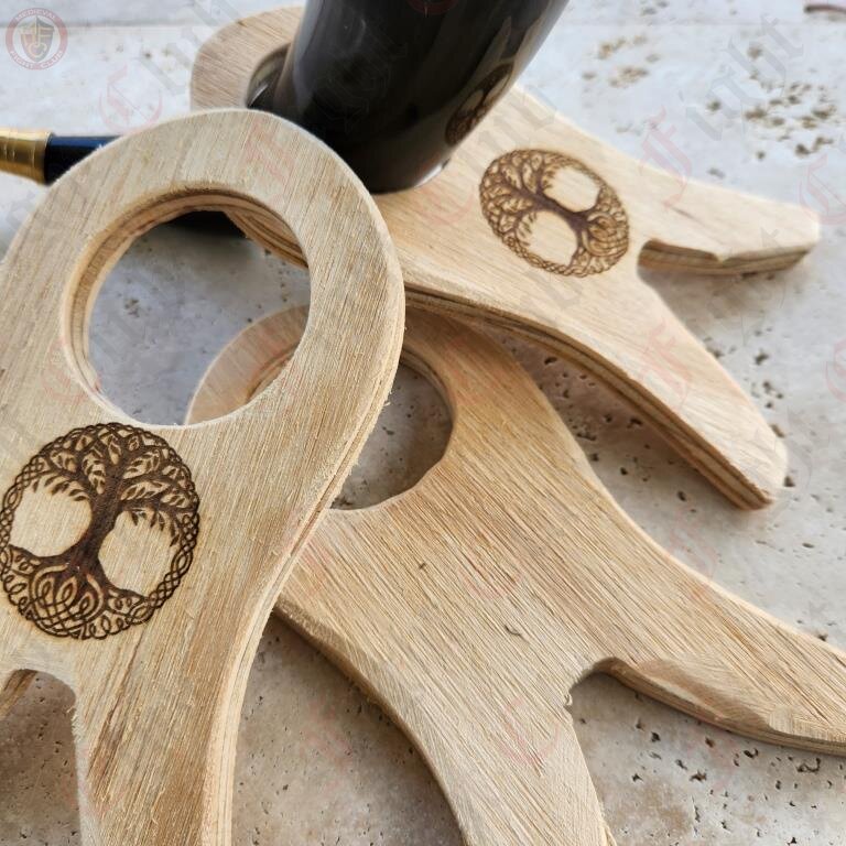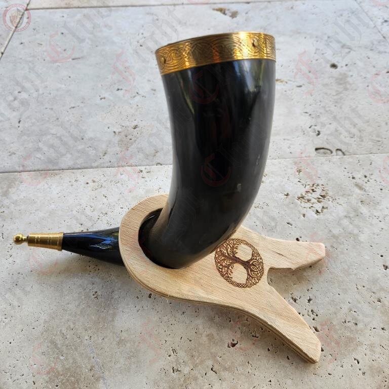 It has been designed to work with almost any horn size. Horn stands are required at feasts and gatherings where people will be using a horn to drink from.