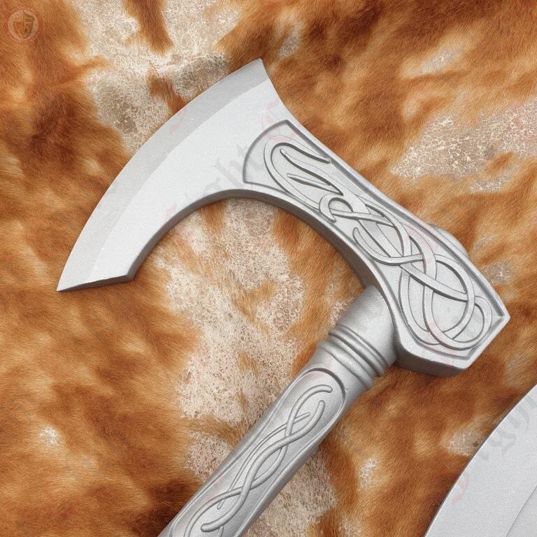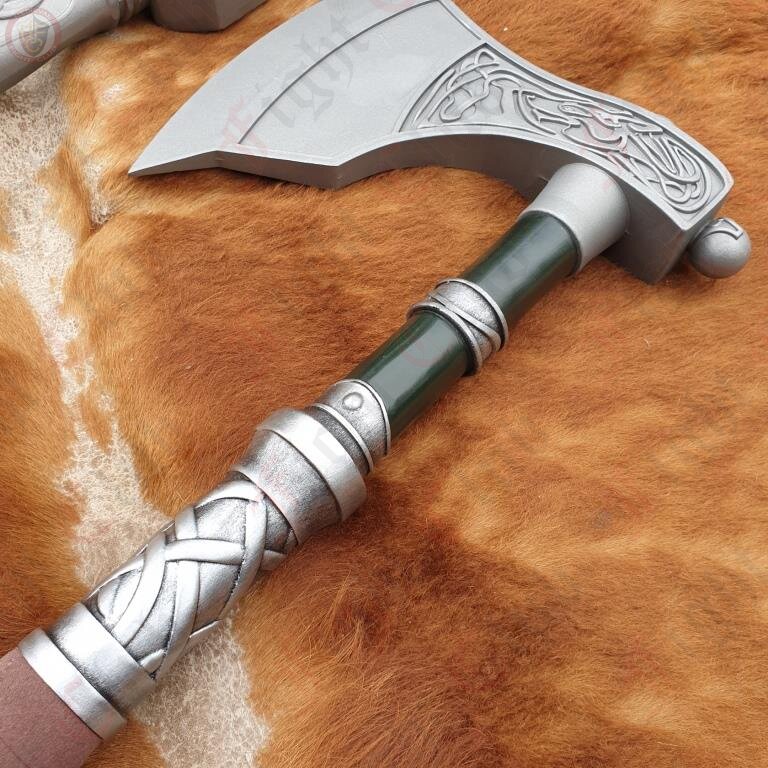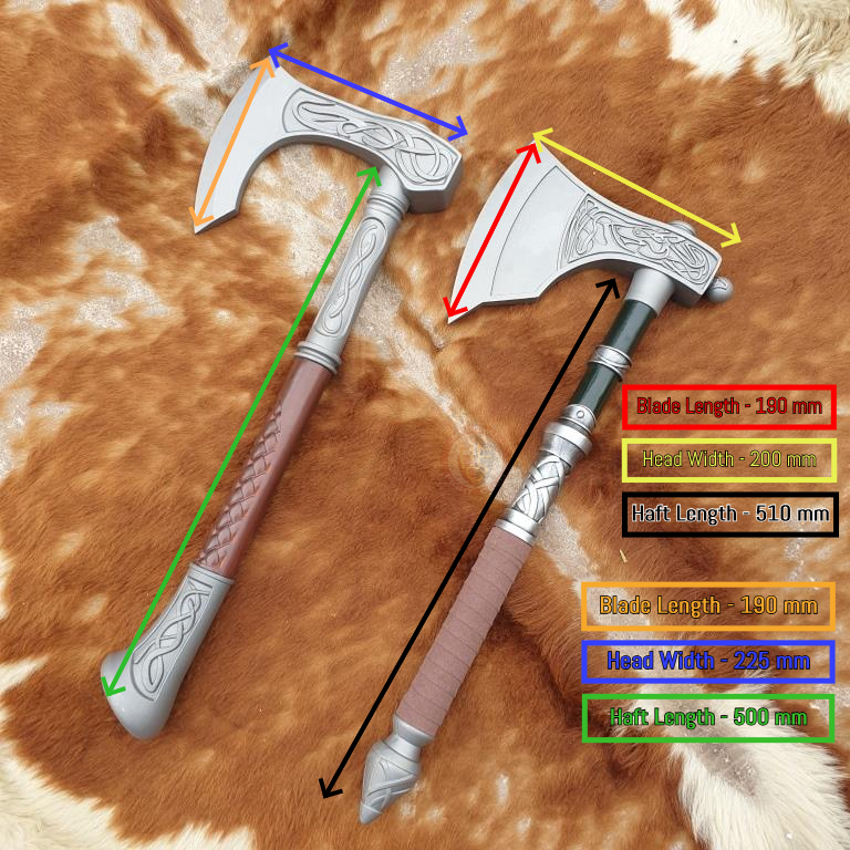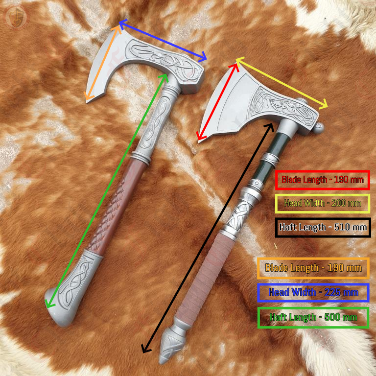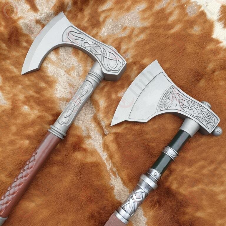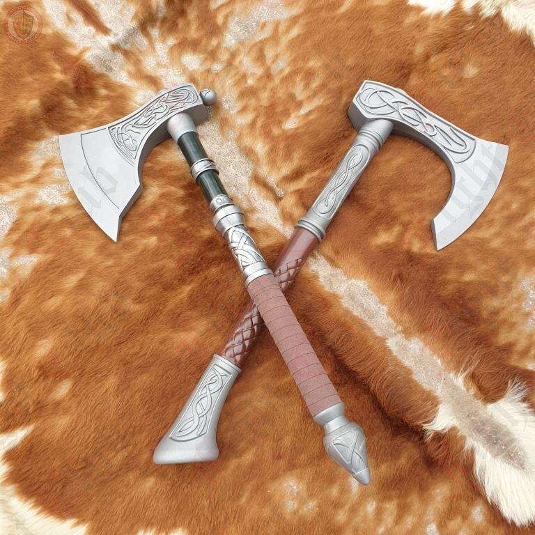 The Valhalla Axes are the perfect option - twinned steel axes for the warriors of Odin who don't need shields. Featuring the classic swirling patterning of the Norsemen along the blade faces and the haft, the axes are as deadly as they are pretty. Perfect for both hanging above your wall and crunching into your foe's skulls.