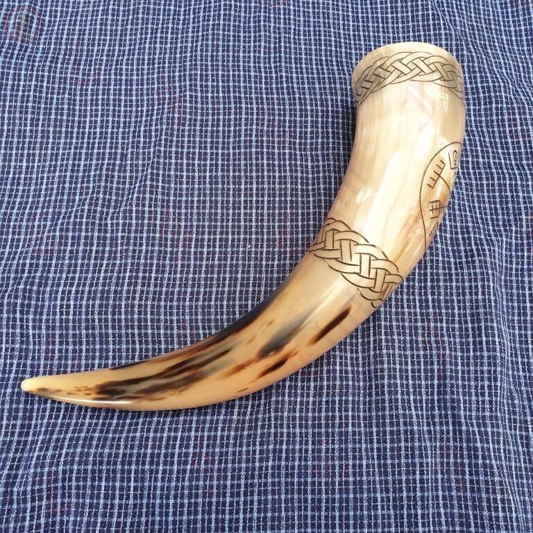 The horn pictured is a fair representation and therefore your horn will differ slightly from the image. It may be lighter or darker than the horn photographed with different markings.